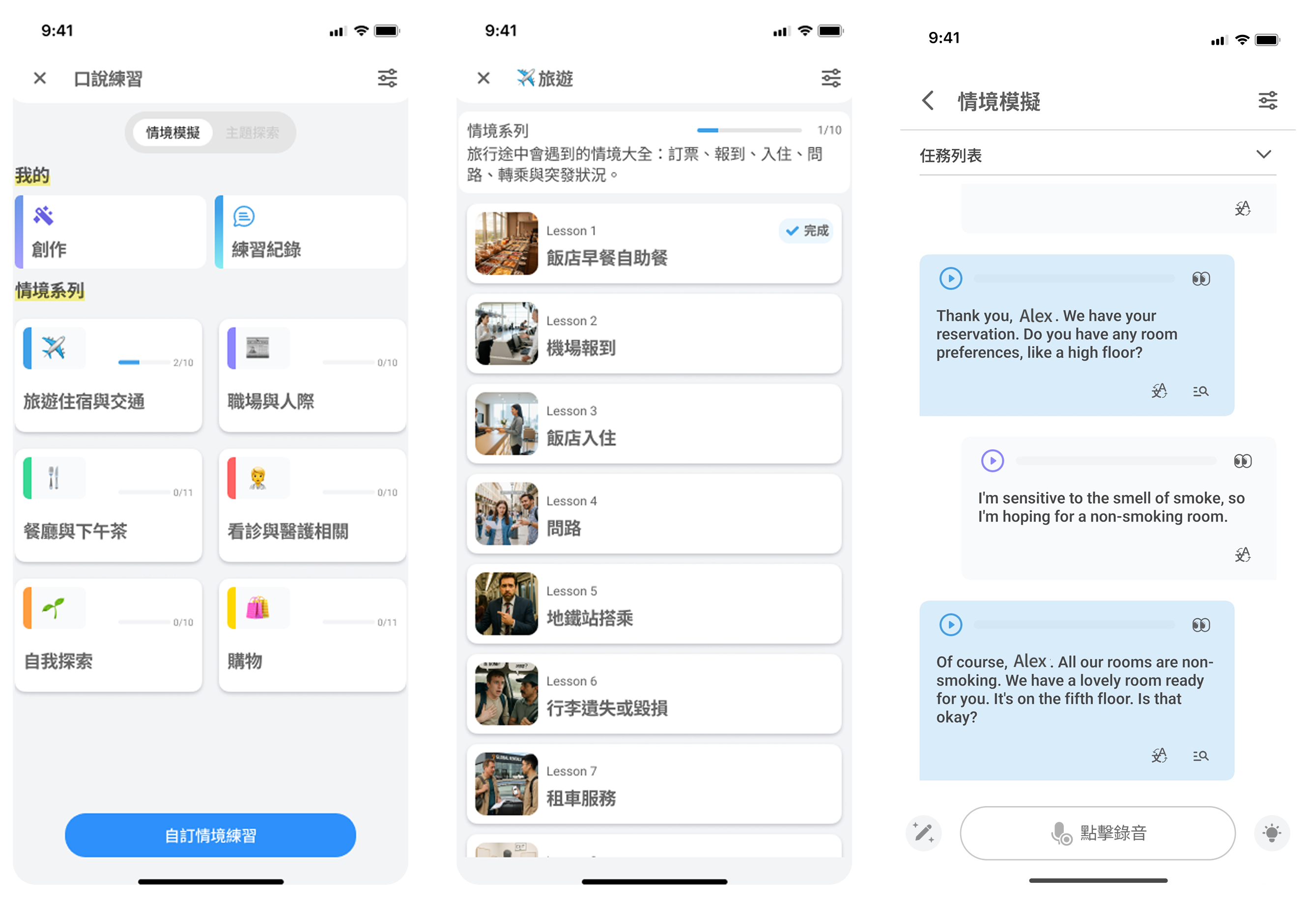 情境模擬提供「任務列表」,讓你一秒沉浸情境中,享受口說練習的樂趣。